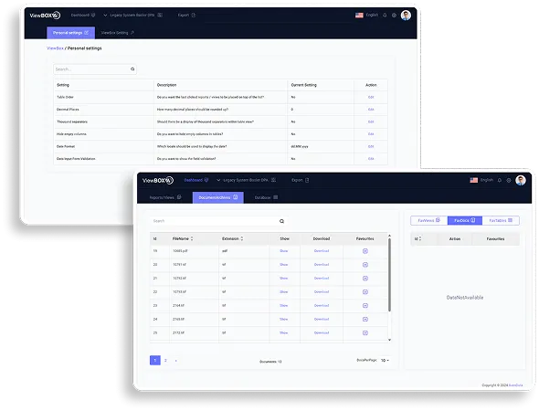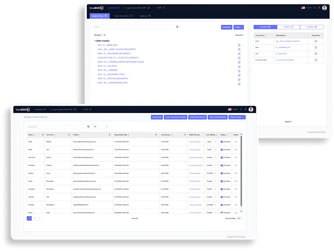 Nach der erfolgreichen Stilllegung Ihres Altsystems übernehmen wir sämtliche relevanten Daten in die ViewBox – inklusive Tabellen, Belege, Reports und individueller Auswertungen. Damit bleibt Ihr Datenbestand nicht nur erhalten, sondern ist auch dauerhaft nutzbar.